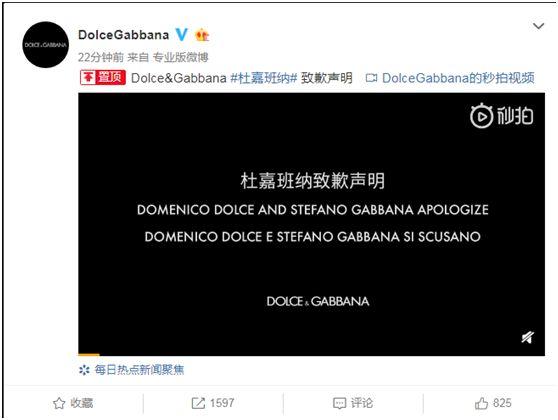 而在11月23日下午,D&G在海外官方社交媒体脸书、推特和Instagram账号上相继发布了二位创始人的道歉视频。总算是凑齐了道歉四连。